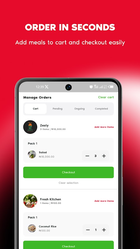 • Thêm món ăn vào giỏ hàng và đặt hàng trong vài giây