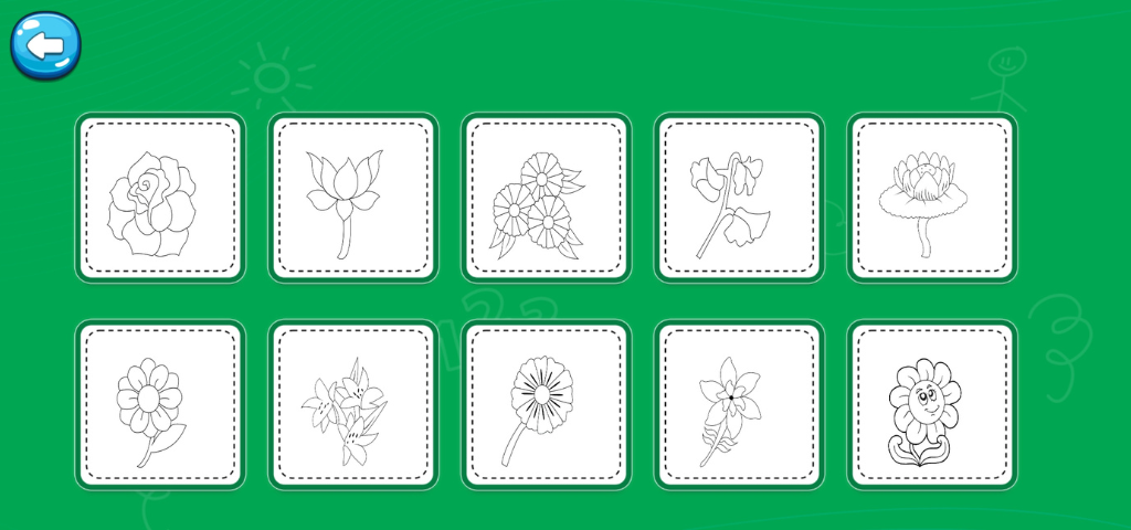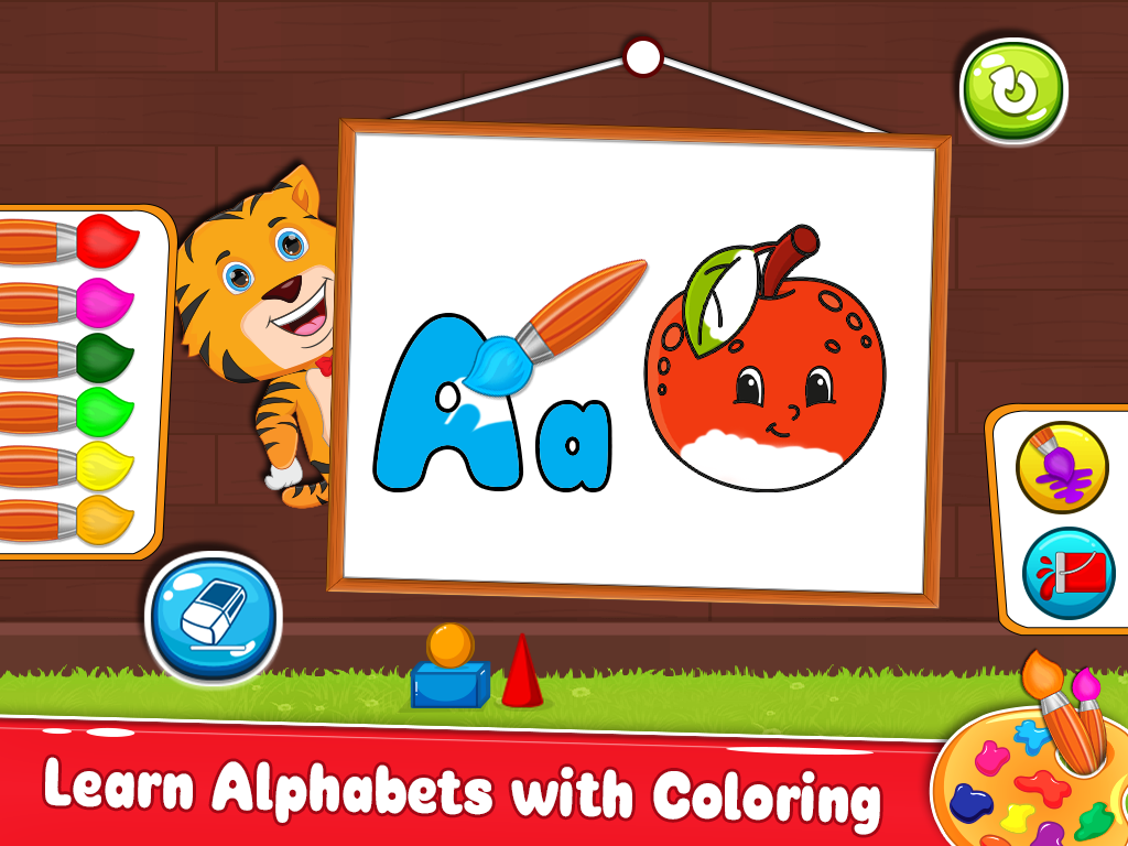 Ứng dụng có nhiều trang tô màu khác nhau, mỗi trang có chủ đề độc đáo riêng, bao gồm động vật, trái cây, rau củ, v.v. Các trang tô màu được thiết kế đơn giản và dễ tô màu, với các đường viền đậm và khoảng trống lớn để tô màu. Trẻ em có thể chọn từ nhiều màu sắc để sử dụng và có thể chuyển đổi giữa các màu chỉ bằng một cú chạm với tính năng giọng nói ngọt ngào