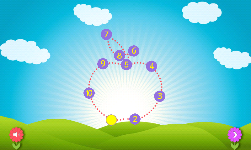 • Once children tap or connect the dots that outline a fruit, numbers are pronounced.