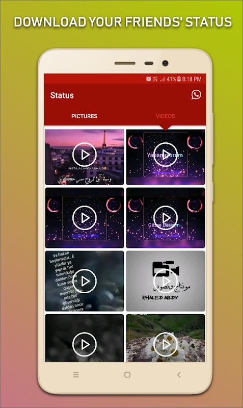 Wonderful and simple application that lets you save WhatsApp status Whatsapp photos or WhatsApp videos in your gallery