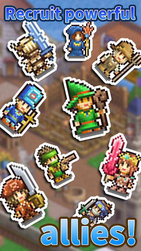 Nghỉ ngơi giữa các trận chiến để xây dựng thị trấn của bạn. Thêm Cửa hàng vũ khí, Cửa hàng vật phẩm, Quán trọ, v.v.!