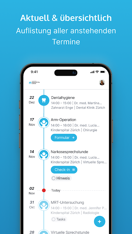 Các chuyên gia của chúng tôi tại khoa cấp cứu sẽ tận tâm chăm sóc con bạn trong khi chúng tôi giúp bạn thoát khỏi gánh nặng hành chính. Với ứng dụng được thiết kế trực quan này, bạn có thể theo dõi các cuộc hẹn và tài liệu quan trọng của con mình. Trong khi bạn đang được chăm sóc tại khoa cấp cứu của chúng tôi, ứng dụng sẽ cung cấp cho bạn thông tin quan trọng về quy trình điều trị, khám và các cuộc hẹn tái khám. Tải xuống ứng dụng ngay bây giờ và đảm bảo chăm sóc cá nhân và kỹ thuật số liền mạch cho con bạn.