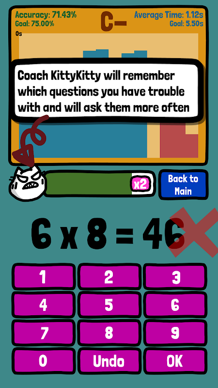 Nếu bạn bỏ lỡ bất kỳ câu hỏi nào, Huấn luyện viên KittyKitty sẽ nhớ hỏi những câu hỏi đó thường xuyên hơn, đảm bảo bạn có thêm thời gian luyện tập cần thiết.