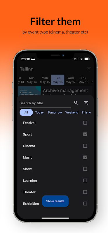Từ các lễ hội âm nhạc và sự kiện văn hóa đến các giải đấu thể thao và hội chợ ẩm thực, kldscope là điểm đến duy nhất của bạn cho mọi thứ diễn ra trên khắp Estonia ở Tallinn, Tartu, Pärnu, Narva và các thành phố nhỏ khác. Ứng dụng của chúng tôi được cập nhật thường xuyên để đảm bảo rằng bạn luôn cập nhật những diễn biến mới nhất trong vùng lân cận của mình.