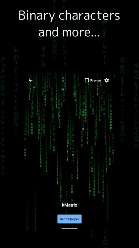 Bạn có thể đặt hình nền trong cài đặt Android hoặc nhấp vào nút "Đặt hình nền" trong kMatrix.