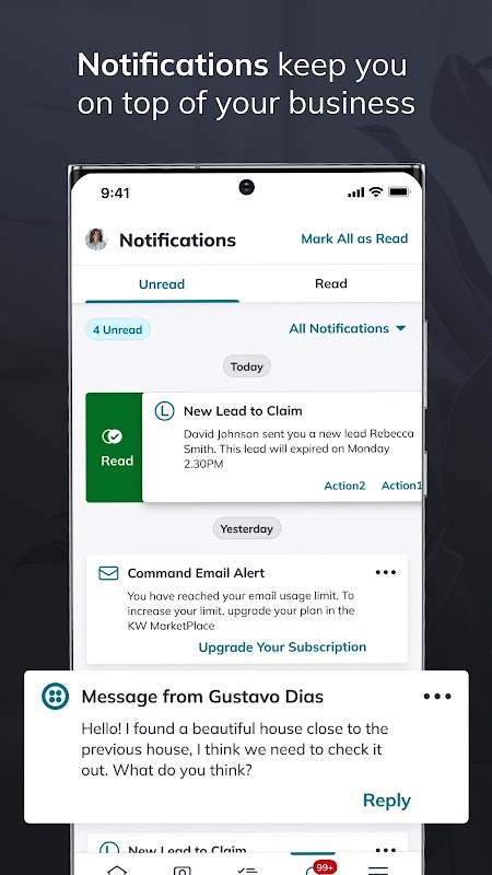 Command Mobile App là một bộ công cụ tích hợp được thiết kế để giúp bạn quản lý doanh nghiệp của mình khi đang di chuyển. Từ mối quan hệ khách hàng tiềm năng, đến mối quan hệ thân thiết, đến các mối quan hệ khách hàng lâu dài, công nghệ bất động sản tiên tiến của chúng tôi giúp bạn kiểm soát cơ sở dữ liệu, doanh nghiệp và tương lai của mình cho dù bạn ở đâu. Hơn cả một CRM, các công cụ được kết nối với nhau của Command hỗ trợ kết nối giữa dữ liệu và máy khách, giúp bạn luôn ở trung tâm của tất cả.