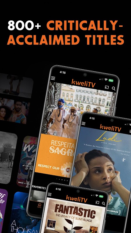 kweliTV tôn vinh những câu chuyện của người da đen trên toàn cầu và quảng bá những người sáng tạo da đen trên khắp thế giới thông qua hơn 800 bộ phim độc lập, phim tài liệu, hoạt hình, loạt phim trên web, chương trình dành cho trẻ em, v.v. – đại diện cho nội dung dành cho người da đen được giới phê bình đánh giá cao từ Bắc Mỹ, Châu Phi, Caribe, Châu Mỹ Latinh, Châu Âu và Úc. 15-20 tựa game mới được thêm vào mỗi tháng.