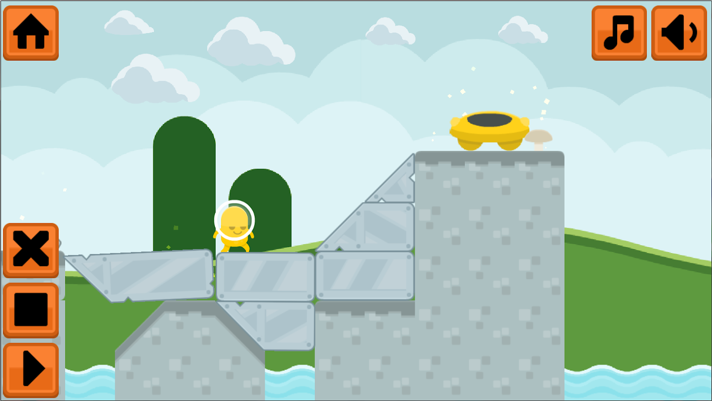 Kéo các khối để bắc cầu qua các khoảng trống và xây dựng các đường dốc để người ngoài hành tinh có thể đến nơi an toàn.