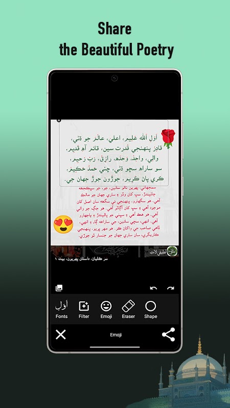 📤 Chia sẻ dễ dàng: Chia sẻ ngay lập tức những câu thơ và ý nghĩa yêu thích của bạn với gia đình và bạn bè. Lan tỏa tình yêu thơ Sindhi chỉ với một lần chạm.