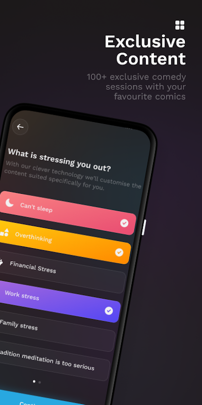 Laughscape là một ứng dụng thư giãn hài hước giúp mọi người thư giãn khỏi căng thẳng hàng ngày mà không cần đến sự nghiêm túc của 'thiền có hướng dẫn' truyền thống. Mỗi phiên âm thanh sẽ được tổ chức bởi các diễn viên hài nổi tiếng. Các nghệ sĩ hài nổi tiếng trên khắp thế giới sẽ giới thiệu cho bạn một phương pháp hoàn toàn mới để thư giãn, thiền định và thoát khỏi những căng thẳng của bạn.