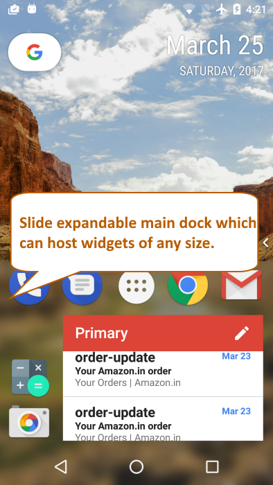 ♦Fixed dock on the desktop - Fixed dock doesn't move as you scroll though desktop screen. It is useful to host static items.