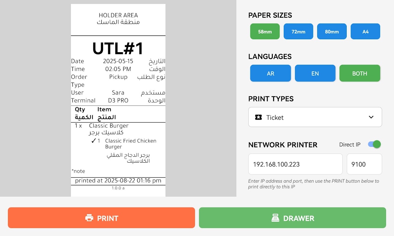 Tiện ích tương thích máy in được thiết kế dành cho người dùng LazyWait POS.