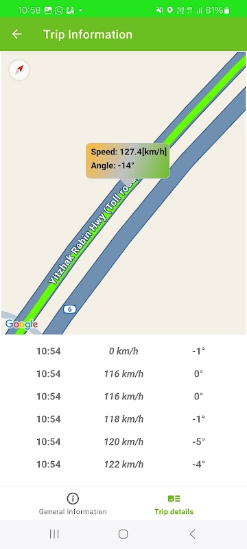 Theo dõi chuyến đi: Ghi lại và giám sát chuyến đi của bạn bằng GPS, theo dõi lộ trình, tốc độ và góc nghiêng cho mỗi chuyến đi.