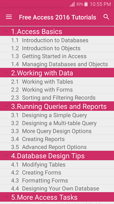 This App is a full and free computer course for MS Access 2016.