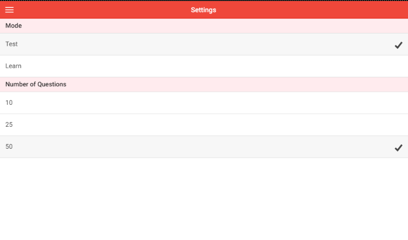 This application has learn mode & test mode. In learn mode, user can select a desired topic. It gives immediate detailed feedback to the user. In test mode, the questions will be randomized and user has the option to select the number of questions.
