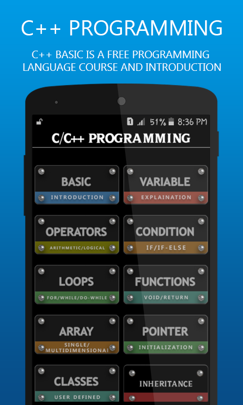 C++ Basic is a FREE programming language course and introduction to C++ for beginners by Predict Apps.Whether you've had any prior programming experience or not, this app will help you learn all you need to know in order to start creating and compiling your own programs. Learning C++ Basics with this app has proved to be fast, effective and free. This app will show you how easy it is to become a programmer. Best Application for People who want to learn Basics of C++ Programming. This application provides material of all the important terms of C++ Basic.