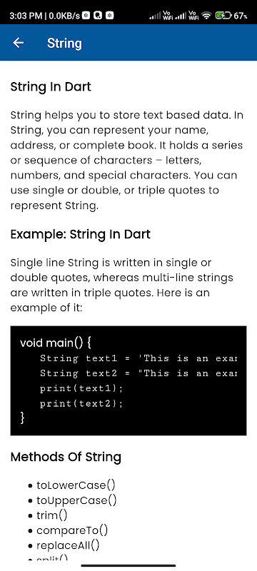Cú pháp ngắn gọn: Cú pháp của Dart được thiết kế để dễ đọc và viết, giảm mã soạn sẵn và nâng cao năng suất của nhà phát triển.