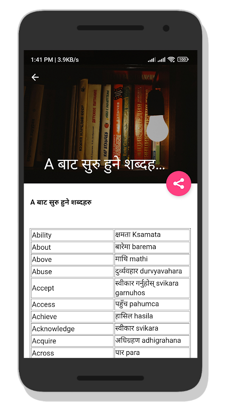 Sử dụng ứng dụng này sinh viên có thể tìm hiểu thêm Kiến thức. Ứng dụng này là ứng dụng giáo dục tốt nhất trên Giải pháp/Hướng dẫn Học tiếng Anh sang tiếng Nepal, ứng dụng này sẽ nỗ lực như một nguồn tài nguyên bỏ túi tuyệt vời.