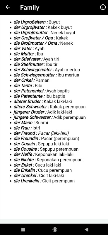Aplikasi Learn German Language berisi kumpulan kosakata sehari-hari untuk kita sebagai pemula agar dapat mudah mempelajari bahasa Jerman dengan cepat, bagi anda yang ingin lancar menggunakan bahasa dan menambah pengetahuan , anda dapat mengunduhnya secara gratis.