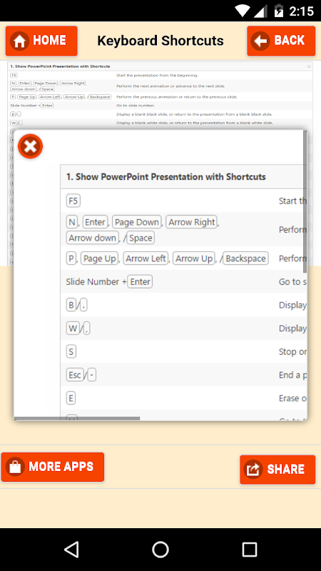 ♦ The App's Design is User friendly and it can work in Offline mode (without Internet) as well. If you don't remember Microsoft PowerPoint Shortcuts Keys, then you can use this App.