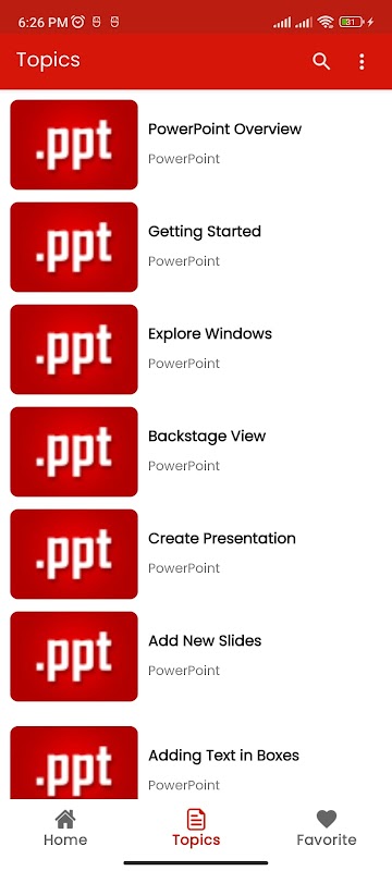 Ứng dụng này chứa các ghi chú cho việc học Phần mềm PowerPoint