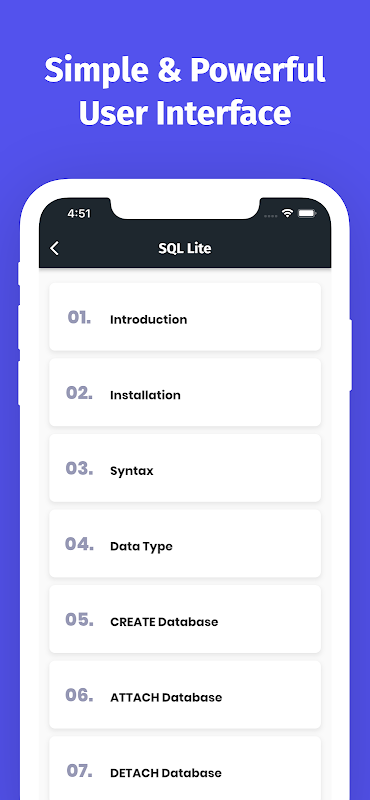 SQL là một ngôn ngữ máy tính cơ sở dữ liệu được thiết kế để truy xuất và quản lý dữ liệu trong cơ sở dữ liệu quan hệ. SQL là viết tắt của Structured Query Language (Ngôn ngữ truy vấn có cấu trúc). Ứng dụng này bao gồm hầu hết các chủ đề cần thiết để hiểu cơ bản về SQL và cảm nhận cách hoạt động của nó.