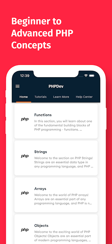 Chào mừng bạn đến với ứng dụng học PHP đỉnh cao! Ứng dụng của chúng tôi được thiết kế để giúp bạn học lập trình PHP và phát triển web theo tốc độ của riêng bạn, với sự tiện lợi là có thể học mọi lúc, mọi nơi, kể cả khi ngoại tuyến.