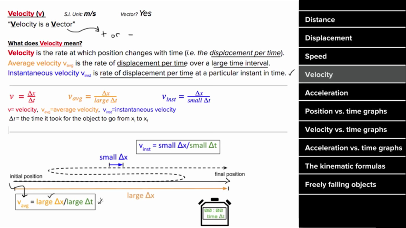 Displacement, velocity, and time , vectors & scalars , reference frames , position vs. time graphs