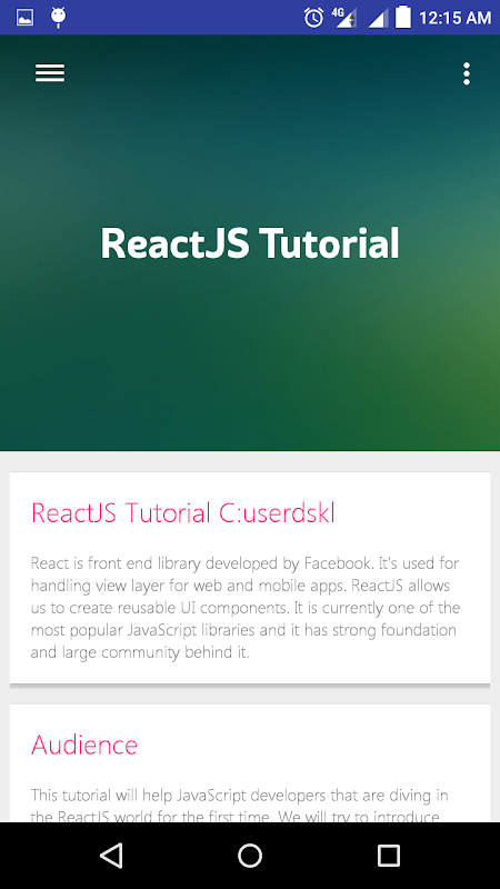 This application is also made in a manner to help out all the students who wish to study ReactJS on a go with a pocket sized ReactJS book in your smart phone.