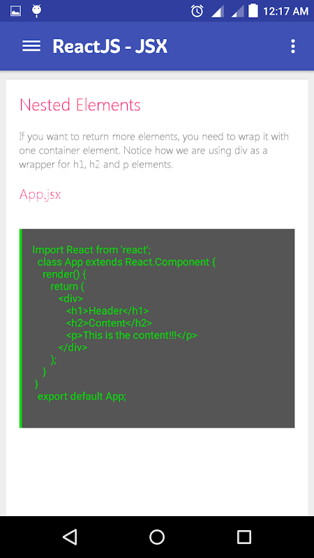 This application allows users to learn ReactJS and all the topics related to it in a step by step hierarchy manner.