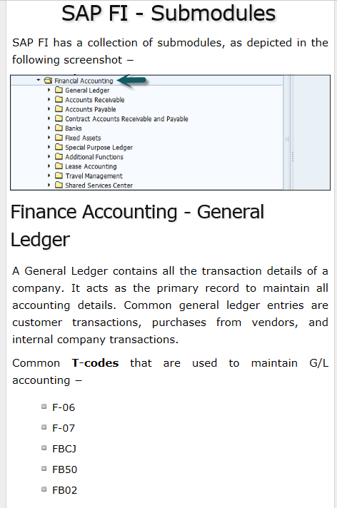 SAP FICO, Tutorial, Learning, Beginners, Overview, Submodules, Company Basics, Business Area, Functional Area, Credit Control, General Ledger.