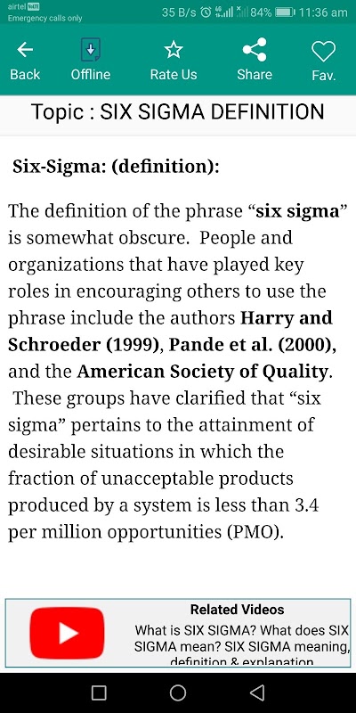 The App is a free Handbook of notes on Six Sigma. You can consider this as teachers notes which is broken down into topics and subtopics for faster learning.