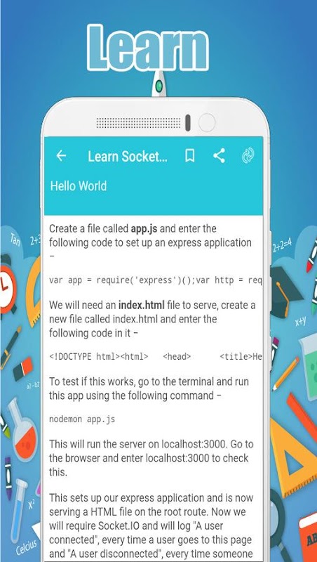 Still looking for explanations why the “Learn Socket.IO” app is exclusive amongst all other apps in the play store app market. Here are features that make this app better than all other Learning Socket.IO apps –