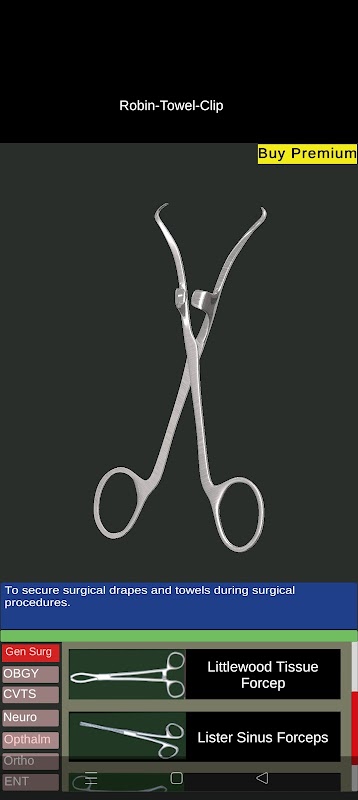 Ứng dụng độc đáo này sẽ giúp bạn làm quen với tất cả các dụng cụ phẫu thuật có thể, các thiết bị và thiết bị y tế ở dạng 3D. Ứng dụng này hữu ích cho tất cả sinh viên y khoa, bác sĩ PG, thực tập sinh, bác sĩ hành nghề, y tá, nhân viên OT và những người quan tâm đến việc học dụng cụ phẫu thuật và thiết bị. Theo truyền thống, tất cả chúng ta đều nghiên cứu các thiết bị và dụng cụ này từ sách hoặc thiết bị kỹ thuật số dưới dạng hình ảnh 2D nhưng trên thực tế đây là những vật thể 3D, sử dụng ứng dụng này ở chế độ 3D sẽ giúp quá trình học tập của bạn trở nên suôn sẻ và thú vị vì bạn có thể phóng to, xoay và nhìn từ tất cả các bên như một kịch bản thế giới thực đối lập với một hình ảnh duy nhất từ một cuốn sách hoặc các thiết bị kỹ thuật số. Ứng dụng này đủ trực quan để tạo ra bộ nhớ lâu dài về mọi nhạc cụ và thiết bị sẽ giúp bạn xử lý nhạc cụ này. Chúng tôi không ngừng cải tiến ứng dụng và bổ sung thêm các công cụ mới mỗi tuần cho đến khi ứng dụng bao gồm mọi dụng cụ, thiết bị và dụng cụ y tế. vì vậy xin vui lòng theo dõi. Hiện tại ứng dụng này bao gồm các dụng cụ, thiết bị và thiết bị dành cho chuyên ngành sau