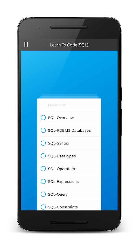 App này cho phép các nhà phát triển hoặc sinh viên CS hoặc sinh viên kỹ thuật hoặc bất cứ ai quan tâm đến việc học SQL từ lý thuyết, thực hiện.