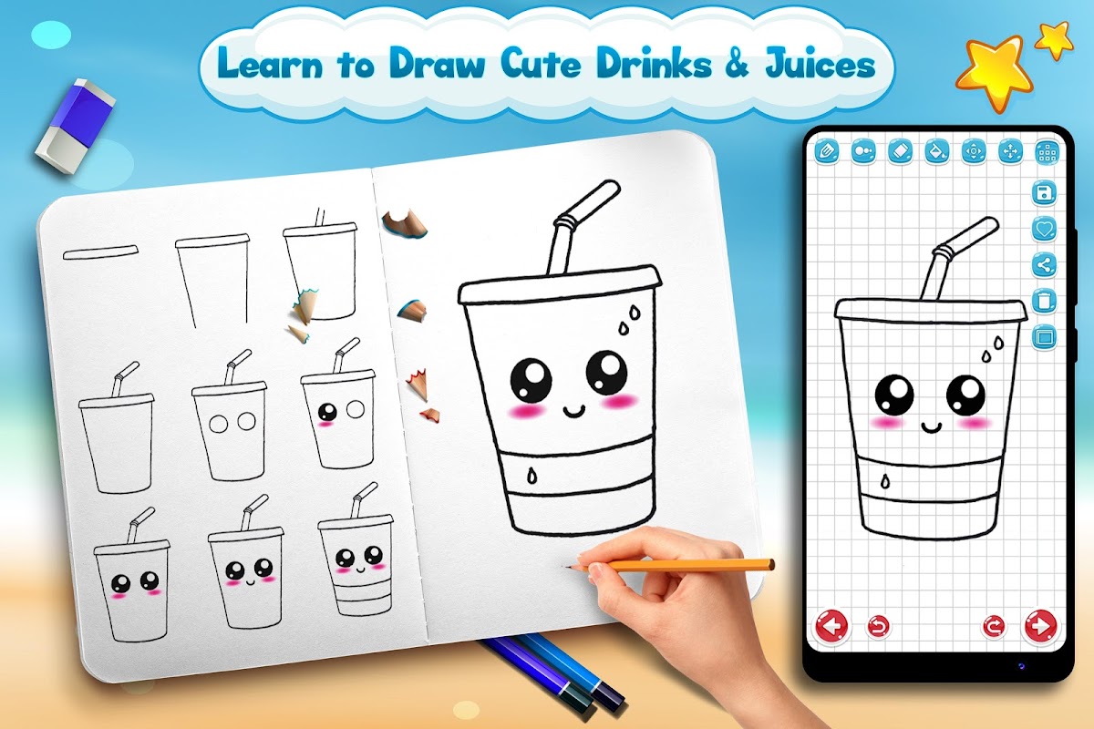 Các tính năng của Học Cách Vẽ Đồ Uống & Nước Trái Cây Dễ Thương:
