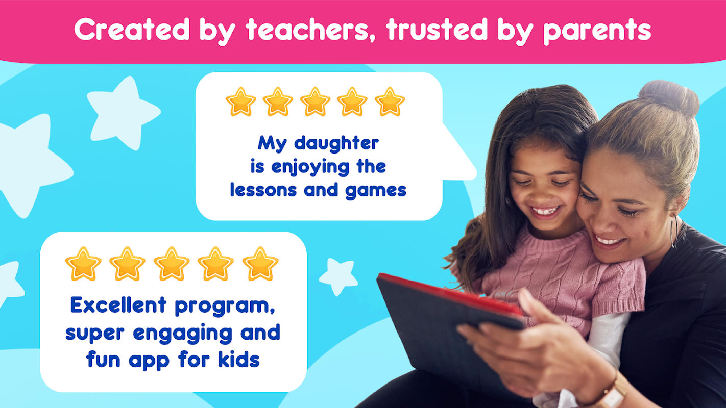 Tham gia cùng hàng nghìn gia đình giúp con em mình trở thành những người đọc tự tin. Đừng chần chừ - hãy tải xuống Học cách đọc ngay hôm nay, bắt đầu bài học đầu tiên của bạn và theo dõi kỹ năng đọc của con bạn phát triển mỗi ngày. Biến mọi bước đi trở nên thú vị, vui vẻ và có ý nghĩa với ứng dụng học tập dành cho trẻ em của chúng tôi!