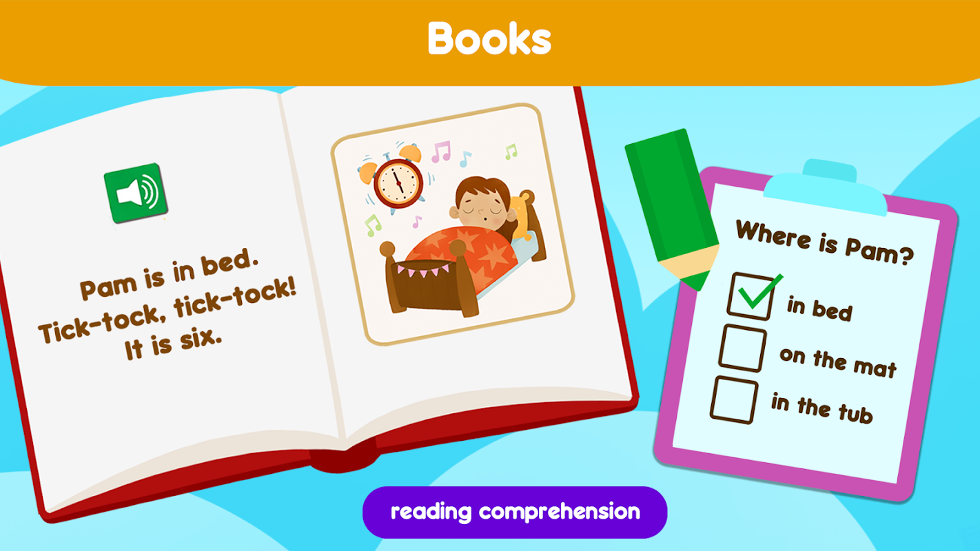 - Bài học Phonics giúp con bạn tiến bộ từ việc nhận biết các chữ cái đến việc đọc những cuốn sách đơn giản. Các tính năng như Phonics dành cho trẻ em và trò chơi ABC giúp mọi hoạt động trở nên dễ dàng theo dõi.