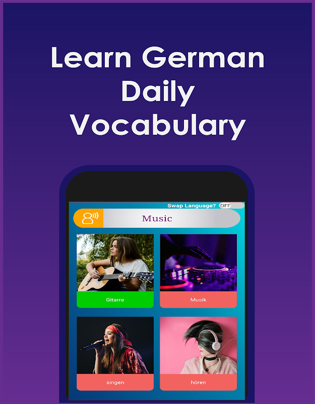 German Vocabulary and English Vocabulary are now easy & fun with SWAP language feature.