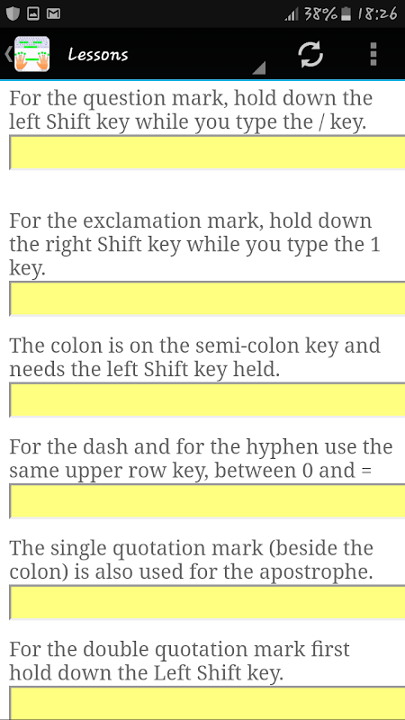 Thoát khỏi Nhận Bad Habits. Loại bỏ những thói quen xấu đánh máy của bạn có lẽ là điều khó khăn nhất để làm. Sử dụng Tất cả 10 ngón tay. Bước tiếp theo là phải học lại vị trí ngón tay đúng trên bàn phím. Tìm hiểu Để Chạm Type. Tiếp theo: Touch gõ. Điều hướng với bàn phím cơ bản Shortcuts. Thực hành Với các ứng dụng này. bài học đánh chữ là một gia sư đánh máy miễn phí cho người mới bắt đầu và tiên tiến để thực hành đánh máy. Tìm hiểu cách gõ có những bài học đánh máy miễn phí và kiểm tra đánh máy miễn phí. Thế giới đáng tin cậy nhất miễn phí gõ bàn phím máy! Hoàn hảo cho mọi lứa tuổi và mức độ, K-12 và xa hơn nữa. Tìm hiểu Typing bây giờ!
