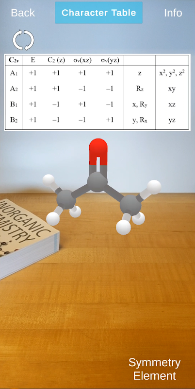 Xem, tạo hoạt ảnh và tương tác với các phần tử đối xứng của hơn 50 phân tử và kiểm tra kiến thức của bạn về đối xứng và nhóm điểm bằng các câu đố của chúng tôi. Bảng ký tự được nhúng cung cấp thông tin đối xứng khi chạm vào một nút.
