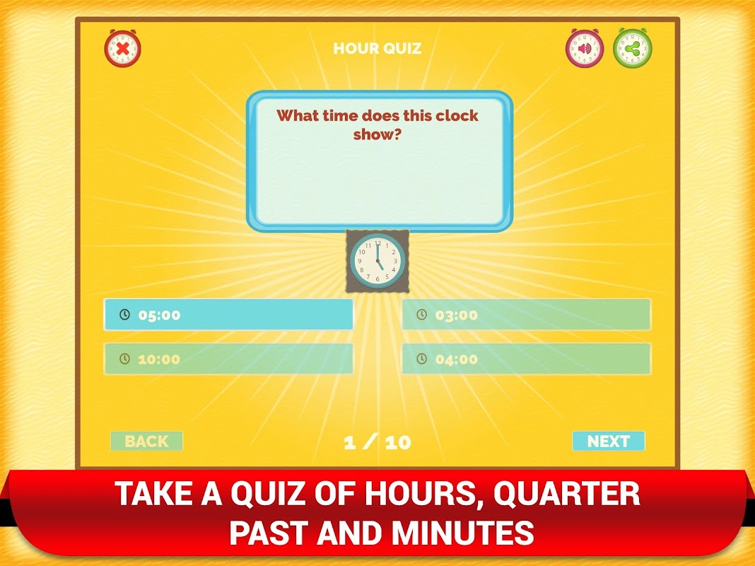 Chơi trò chơi toán học đồng hồ để học các khái niệm thời gian cơ bản như giờ, phút, quá khứ và quý có một số lợi ích. Ngoài ra, nó giúp chúng ta hiểu được sự khác biệt giữa đồng hồ kỹ thuật số và đồng hồ kim. Các hoạt động đồng hồ hấp dẫn giúp việc học trở nên thú vị. Có rất nhiều bài tập xem giờ dành cho trẻ em trong ứng dụng này. Ứng dụng có giao diện thân thiện với người dùng và cung cấp nội dung phù hợp với lứa tuổi cho trẻ em. Thiết kế của ứng dụng cực kỳ thân thiện với trẻ em và có màu sắc và hình ảnh động tuyệt đẹp. Bạn có thể chọn từ nhiều trò chơi toán học đồng hồ thú vị để giúp trẻ phát triển khả năng vận động của mình. Một nghiên cứu cho thấy trẻ em thông thạo toán học ở độ tuổi 10 kiếm được nhiều tiền hơn đáng kể khi ở độ tuổi 30. Bạn cần lý do thuyết phục nào hơn để khuyến khích con mình chơi trò chơi toán học đồng hồ này?