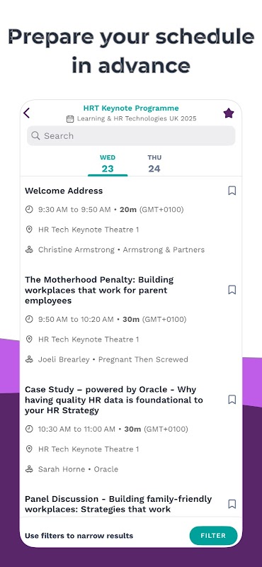 - Lên kế hoạch cho chuyến thăm của bạn: Khám phá các chương trình hội nghị và đánh dấu các phiên bạn muốn tham dự.