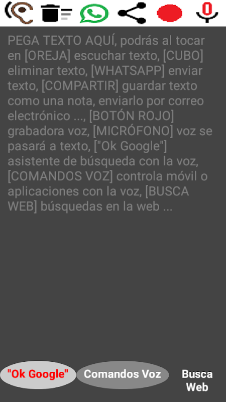 Aplicación que lee texto en voz alta, podrás compartir texto por Whatsapp, enviarlo por correo electrónico, guardarlo como una nota ...