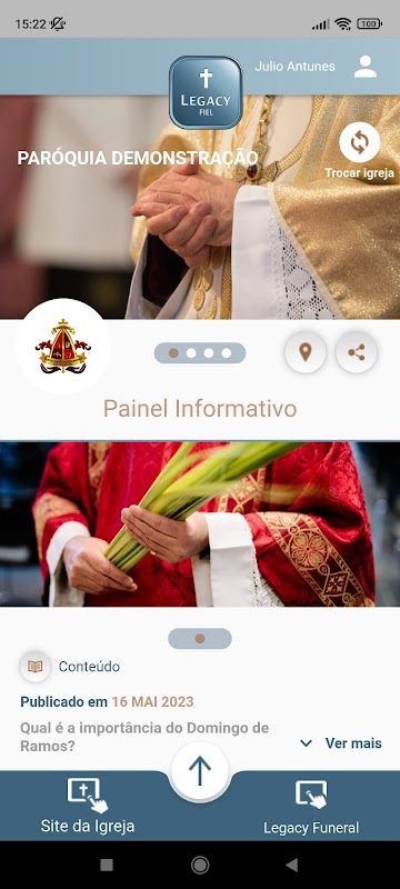 Bảng thông tin với các sự kiện của tổ chức, mua vé, nội dung tôn giáo, cầu nguyện, kinh thánh, phụng vụ, đóng góp và nhiều hơn nữa.
