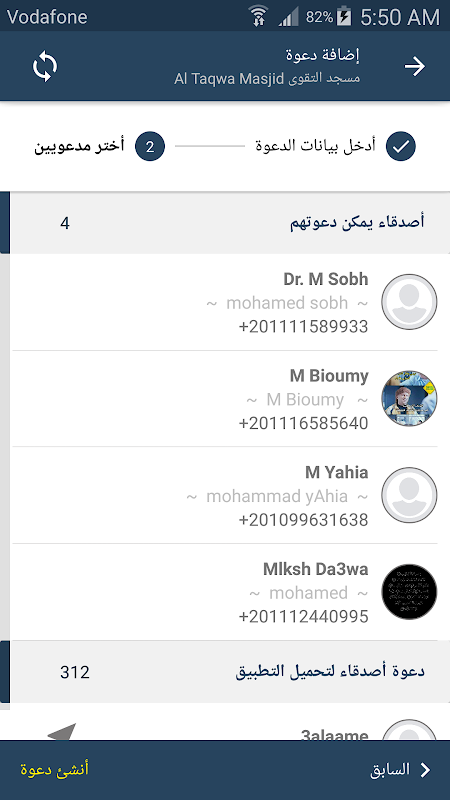 -يمكنك مشاهدة حالة المدعوين إلى الدعوة (هل وافقوا أو رفضوا أو ذهبوا بالفعل)