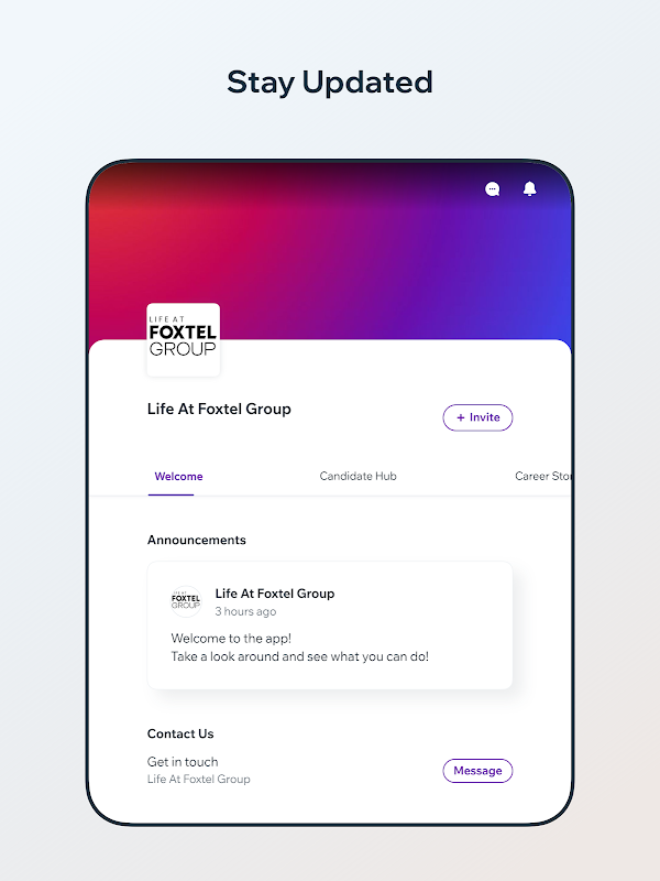 Ứng dụng trải nghiệm nhân viên dành cho nhân viên của Tập đoàn Foxtel và phỏng vấn ứng viên.