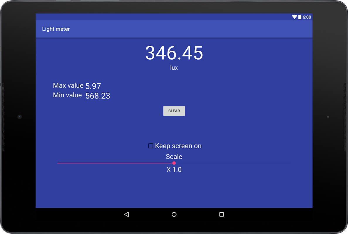 ứng dụng đồng hồ đo ánh sáng này sử dụng các đơn vị lumix để tính toán cường độ ánh sáng.
