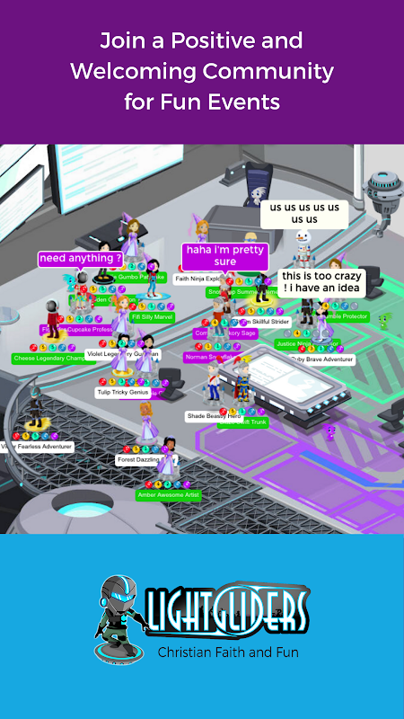 Hãy tham gia Lightgliders để trải nghiệm thế giới ảo của đức tin Cơ đốc, trò chơi và cộng đồng! Lightgliders là trò chơi trực tuyến nhiều người chơi với các nhiệm vụ thú vị, lịch sự kiện cộng đồng và các hoạt động hàng tuần khuyến khích đức tin và giá trị Kinh thánh! Chơi các trò chơi vui nhộn và xem video để nâng cấp Lightglider của bạn và mở khóa nhiều hoạt động hơn trong Học viện. Tham gia các sự kiện trong trò chơi để gặp gỡ bạn bè mới và nhận quần áo, mũ và các vật phẩm độc quyền khác để tùy chỉnh nhân vật của bạn. Tìm hiểu cách bạn tỏa sáng với các hoạt động dựa trên Kinh thánh được cập nhật hàng tuần. Yêu cầu cha mẹ của bạn tải Lightgliders cho máy tính, máy tính bảng hoặc điện thoại thông minh của bạn ngay hôm nay!