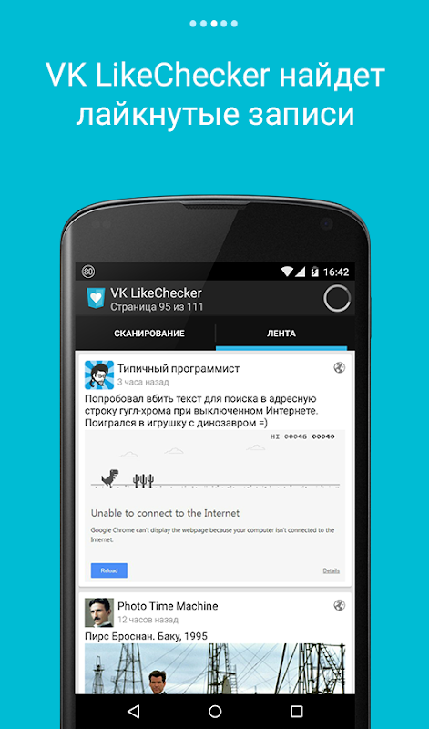 Хочется знать, что лайкает девушка или друг? VK LikeChecker поможет в этом. Приложение находит записи, которые лайкал пользователь за указанное время, и составляет из них ленту. Все, что нужно ‒ ID страницы и немного терпения.